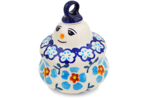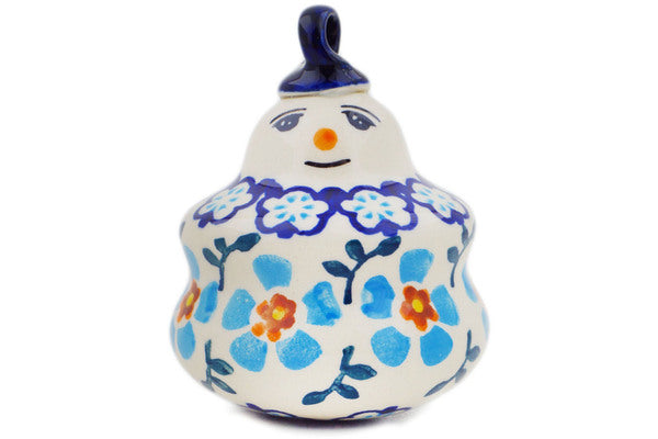 This Polish Pottery Snowman Ornament is handmade and handpainted by the Manufaktura factory in Boleslawiec, Poland. Manufacturer item number H8202P. It is 3" high and measures 2½" by 2½". The weight of this Snowman Ornament is 0.2 lbs. It is part of the Blue Chain Collection.