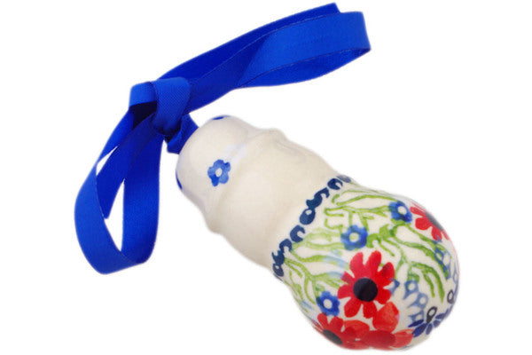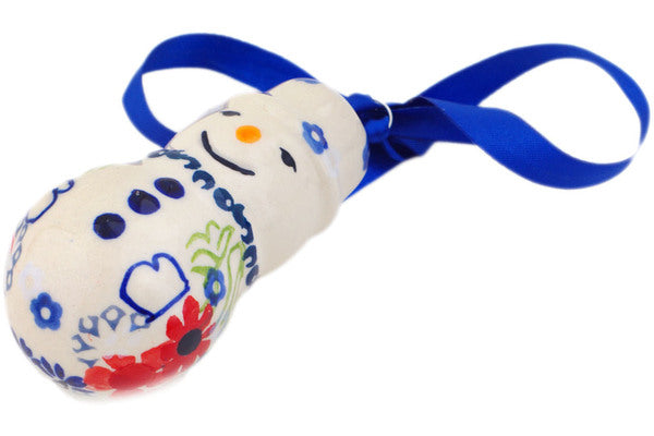 This Polish Pottery Snowman Ornament is handmade and handpainted by the Manufaktura factory in Boleslawiec, Poland. Manufacturer item number H7477P. It is 3" high and measures 1½" by 1½". The weight of this Snowman Ornament is 0.2 lbs. It is part of the Red Blossom Collection.