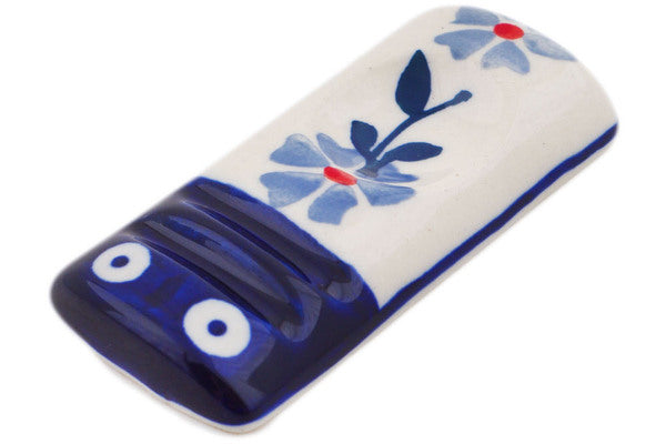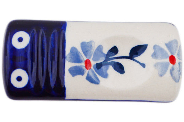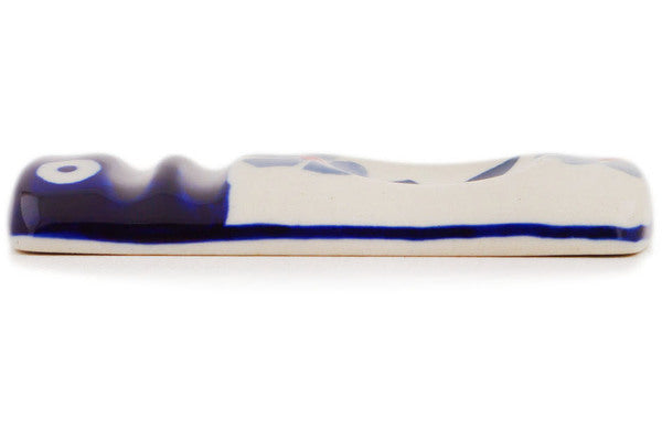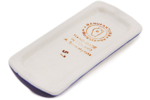 This Polish Pottery Stand for Cutlery is handmade and handpainted by the Manufaktura factory in Boleslawiec, Poland. Manufacturer item number H0827R. It is ½" high and measures 3¼" by 1½". The weight of this Stand for Cutlery is 0.1 lbs. It is part of the Peacock Forget-Me-Not Collection.