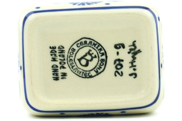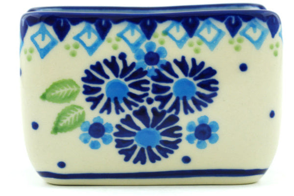 This Polish Pottery Sugar Packet Holder is handmade and handpainted by the Ceramika Bona factory in Boleslawiec, Poland. Manufacturer item number H3443H. It is 2½" high and measures 3½" by 2¾". The weight of this Sugar Packet Holder is 0.5 lbs. It is part of the Aster Patches Collection.