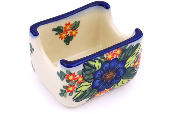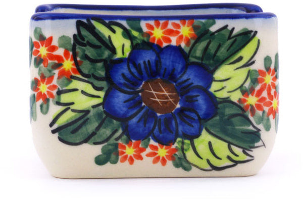 This Polish Pottery Sugar Packet Holder is handmade and handpainted by the Ceramika Bona factory in Boleslawiec, Poland. Manufacturer item number H7793G. It is 2½" high and measures 3½" by 2¾". The weight of this Sugar Packet Holder is 0.5 lbs. It is part of the Blue Bouquet Collection.