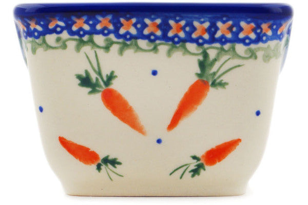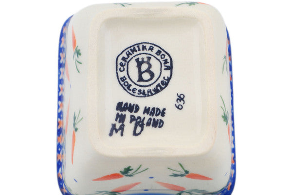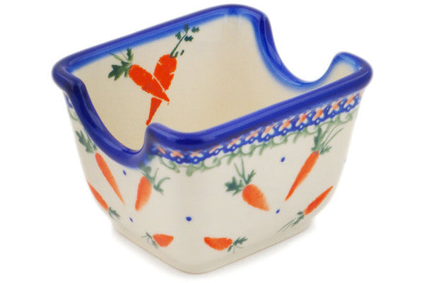 This Polish Pottery Sugar Packet Holder is handmade and handpainted by the Ceramika Bona factory in Boleslawiec, Poland. Manufacturer item number H9684O. It is 2½" high and measures 3½" by 2¾". The weight of this Sugar Packet Holder is 0.5 lbs. It is part of the Carrot Delight Collection.