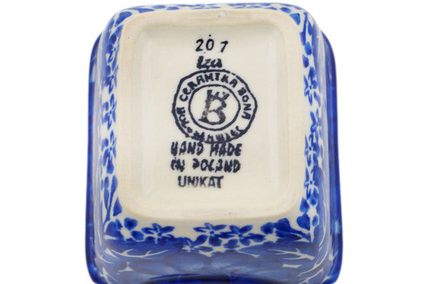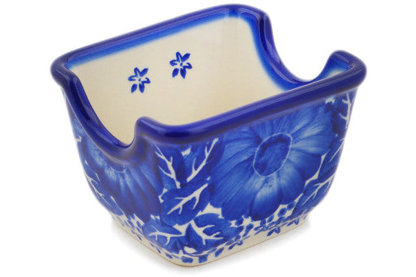 This Polish Pottery Sugar Packet Holder is handmade and handpainted by the Ceramika Bona factory in Boleslawiec, Poland. Manufacturer item number H7584P. It is 2½" high and measures 3½" by 2¾". The weight of this Sugar Packet Holder is 0.5 lbs. It is part of the Cobalt Fantasy Collection.