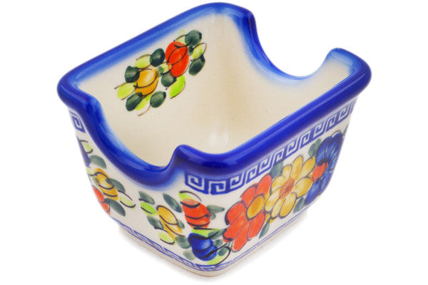 This Polish Pottery Sugar Packet Holder is handmade and handpainted by the Ceramika Bona factory in Boleslawiec, Poland. Manufacturer item number H3940Q. It is 2½" high and measures 3½" by 2¾". The weight of this Sugar Packet Holder is 0.5 lbs. It is part of the Fall Garden Collection.