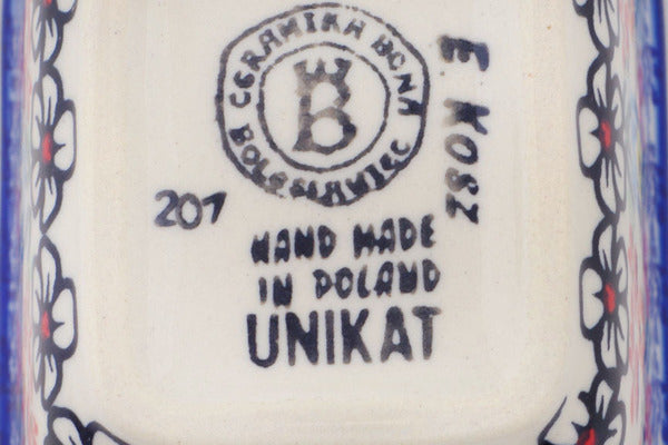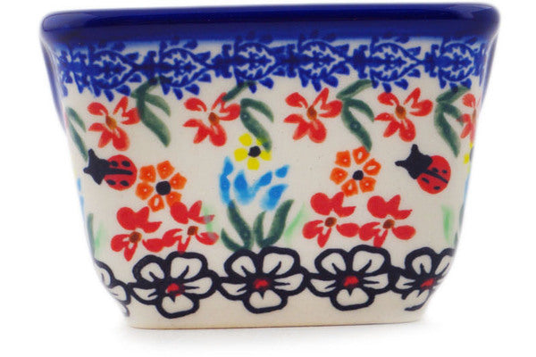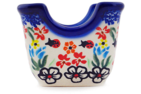 This Polish Pottery Sugar Packet Holder is handmade and handpainted by the Ceramika Bona factory in Boleslawiec, Poland. Manufacturer item number H2136G. It is 2½" high and measures 3½" by 2¾". The weight of this Sugar Packet Holder is 0.5 lbs. It is part of the Fanciful Ladybug Collection.