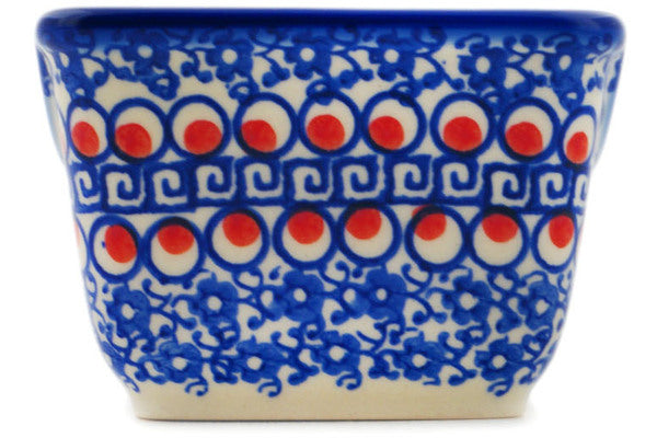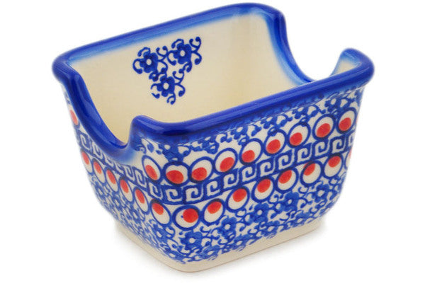 This Polish Pottery Sugar Packet Holder is handmade and handpainted by the Ceramika Bona factory in Boleslawiec, Poland. Manufacturer item number H7057P. It is 2½" high and measures 3½" by 2¾". The weight of this Sugar Packet Holder is 0.5 lbs. It is part of the Floral Peacock Collection.