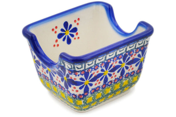 This Polish Pottery Sugar Packet Holder is handmade and handpainted by the Ceramika Bona factory in Boleslawiec, Poland. Manufacturer item number H9036P. It is 2½" high and measures 3½" by 2¾". The weight of this Sugar Packet Holder is 0.5 lbs. It is part of the Irish Spring Collection.