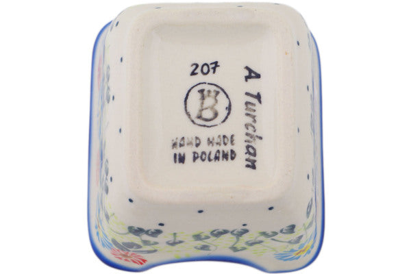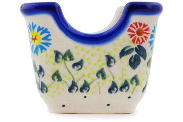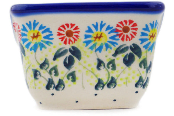 This Polish Pottery Sugar Packet Holder is handmade and handpainted by the Ceramika Bona factory in Boleslawiec, Poland. Manufacturer item number H2056R. It is 2½" high and measures 3½" by 2¾". The weight of this Sugar Packet Holder is 0.5 lbs. It is part of the Long-stemmed Beauties Collection.