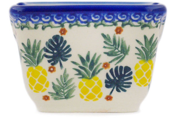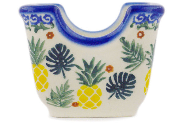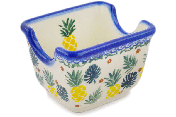 This Polish Pottery Sugar Packet Holder is handmade and handpainted by the Ceramika Bona factory in Boleslawiec, Poland. Manufacturer item number H3937R. It is 2½" high and measures 3½" by 2¾". The weight of this Sugar Packet Holder is 0.5 lbs. It is part of the Pineapple Parade Collection.