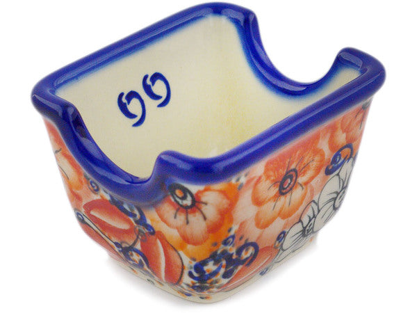This Polish Pottery Sugar Packet Holder is handmade and handpainted by the Ceramika Bona factory in Boleslawiec, Poland. Manufacturer item number H5864R. It is 2½" high and measures 3½" by 2¾". The weight of this Sugar Packet Holder is 0.5 lbs. It is part of the Poppy Passion Collection.