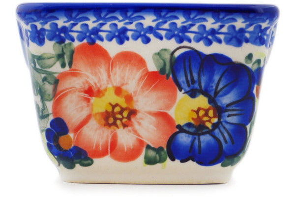 This Polish Pottery Sugar Packet Holder is handmade and handpainted by the Ceramika Bona factory in Boleslawiec, Poland. Manufacturer item number H7157Q. It is 2½" high and measures 3½" by 2¾". The weight of this Sugar Packet Holder is 0.5 lbs. It is part of the Poppy Trio Collection.