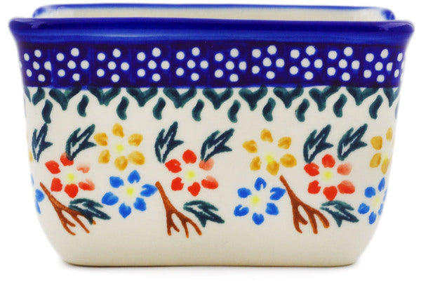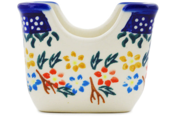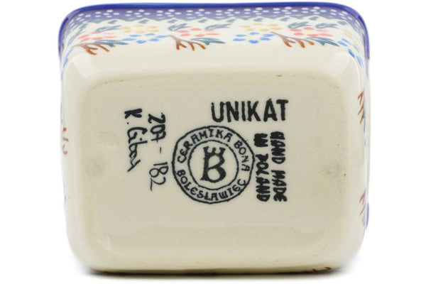 This Polish Pottery Sugar Packet Holder is handmade and handpainted by the Ceramika Bona factory in Boleslawiec, Poland. Manufacturer item number H0495K. It is 2½" high and measures 3½" by 2¾". The weight of this Sugar Packet Holder is 0.5 lbs. It is part of the Spring Flower Ring Collection.