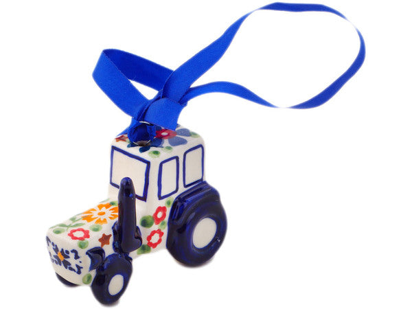 This Polish Pottery Tractor Ornament is handmade and handpainted by the Manufaktura factory in Boleslawiec, Poland. Manufacturer item number H8427P. It is 2¼" high and measures 2¾" by 1¼". The weight of this Tractor Ornament is 0.1 lbs. It is part of the Botanical Sprinkles Collection.