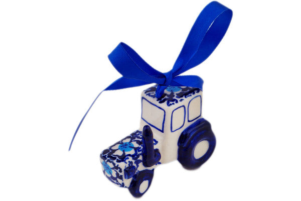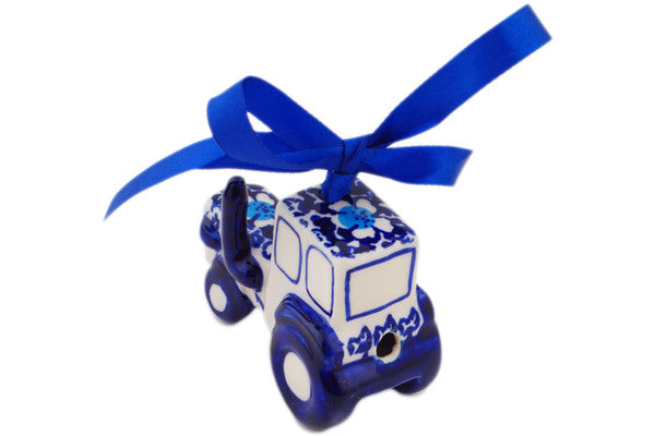 This Polish Pottery Tractor Ornament is handmade and handpainted by the Manufaktura factory in Boleslawiec, Poland. Manufacturer item number H8353P. It is 2¼" high and measures 2¾" by 1¼". The weight of this Tractor Ornament is 0.1 lbs. It is part of the Flowers On The Lake Collection.