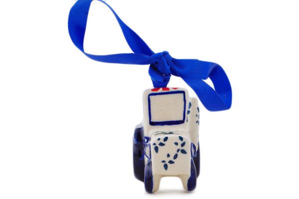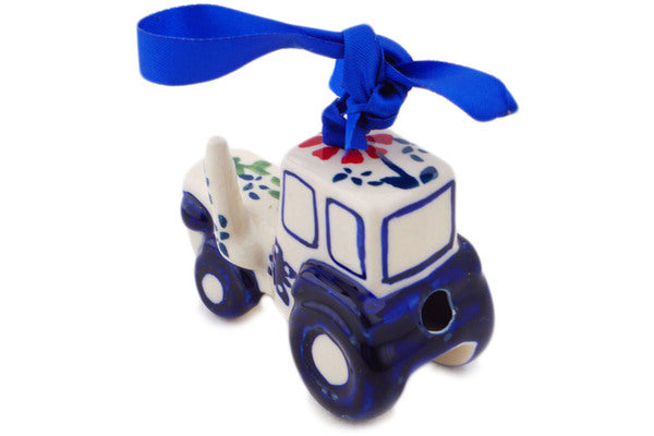 This Polish Pottery Tractor Ornament is handmade and handpainted by the Manufaktura factory in Boleslawiec, Poland. Manufacturer item number H8234P. It is 2¼" high and measures 2¾" by 1¼". The weight of this Tractor Ornament is 0.1 lbs. It is part of the Last Summer Flowers Collection.