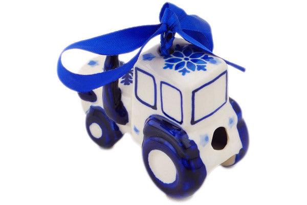 This Polish Pottery Tractor Ornament is handmade and handpainted by the Manufaktura factory in Boleslawiec, Poland. Manufacturer item number H8168P. It is 2¼" high and measures 2¾" by 1¼". The weight of this Tractor Ornament is 0.1 lbs. It is part of the Snowdrift Collection.
