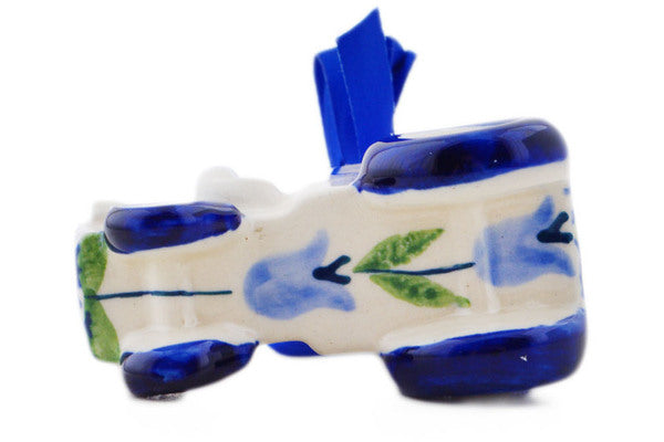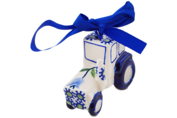 This Polish Pottery Tractor Ornament is handmade and handpainted by the Manufaktura factory in Boleslawiec, Poland. Manufacturer item number H8490P. It is 2¼" high and measures 2¾" by 1¼". The weight of this Tractor Ornament is 0.1 lbs. It is part of the Sweet Dreams Collection.