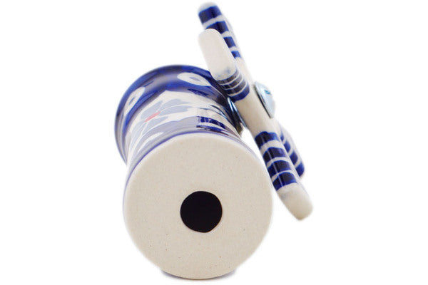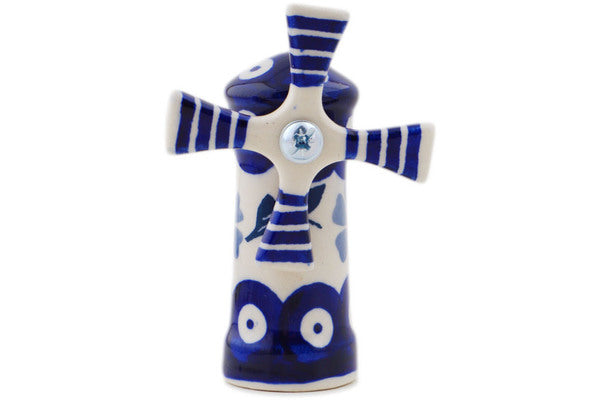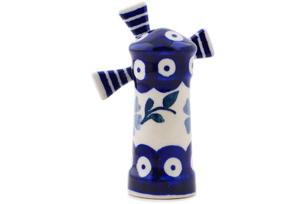 This Polish Pottery Windmill Figurine is handmade and handpainted by the Manufaktura factory in Boleslawiec, Poland. Manufacturer item number H9172P. It is 3½" high and measures 2¼" by 1¼". The weight of this Windmill Figurine is 0.1 lbs. It is part of the Peacock Forget-Me-Not Collection.