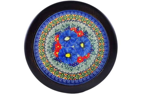 This is a Polish pottery Unikat (Signature) Stool, which means that it has been hand painted with both sponges and brushes and it is signed by the artist who painted it. Unikat pieces are the most intricate works of art. Larger Unikat items take hours of very careful work to finish.