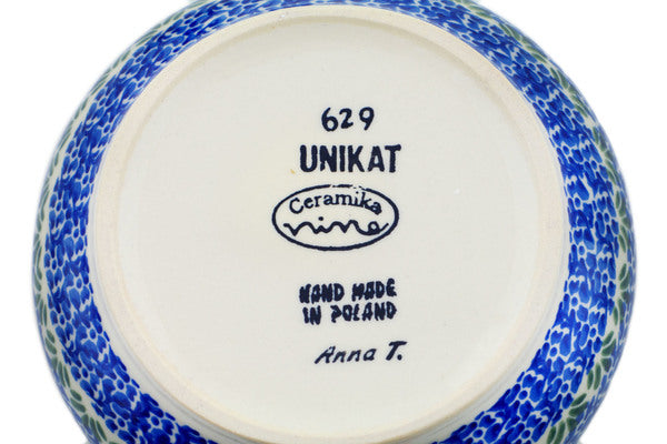 This is a Polish pottery Unikat (Signature) Tea or Coffee Pot, which means that it has been hand painted with both sponges and brushes and it is signed by the artist who painted it. Unikat pieces are the most intricate works of art. Larger Unikat items take hours of very careful work to finish.