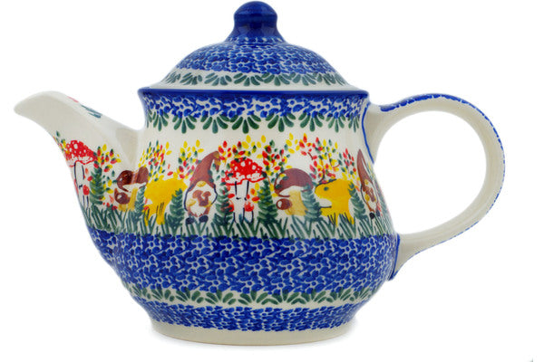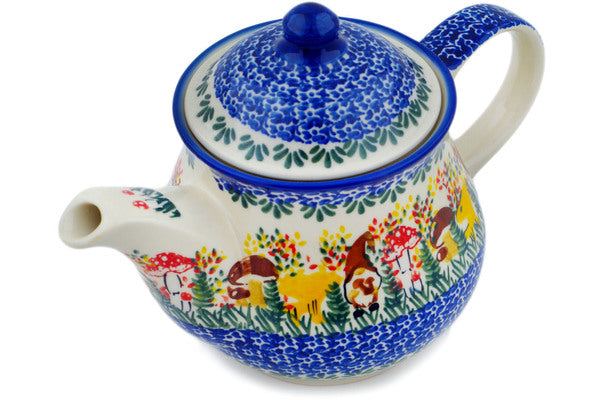 This Polish Pottery Tea or Coffee Pot is handmade and handpainted by the Ceramika Nina factory in Boleslawiec, Poland. Manufacturer item number H2832P. It is 6¾" high and measures 10" by 5¾". The capacity of this Tea or Coffee Pot is 38.21 oz (brimful) and it weighs 0.3 lbs. It is part of the Mushroom Love Collection.