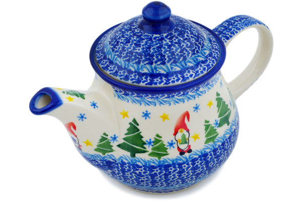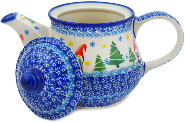 This Polish Pottery Tea or Coffee Pot is handmade and handpainted by the Ceramika Nina factory in Boleslawiec, Poland. Manufacturer item number H2756P. It is 6¾" high and measures 10" by 5¾". The capacity of this Tea or Coffee Pot is 38.21 oz (brimful) and it weighs 0.3 lbs. It is part of the Twinkle Twinkle Little Gnome Collection.