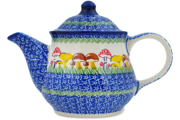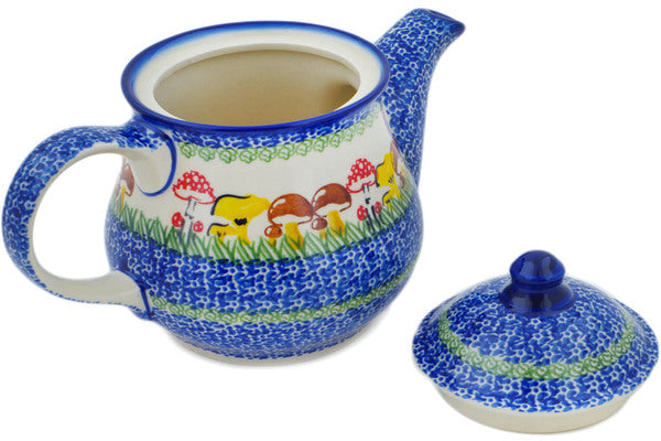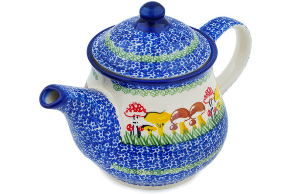 This Polish Pottery Tea or Coffee Pot is handmade and handpainted by the Ceramika Nina factory in Boleslawiec, Poland. Manufacturer item number H2801P. It is 6¾" high and measures 10" by 5¾". The capacity of this Tea or Coffee Pot is 38.21 oz (brimful) and it weighs 0.3 lbs. It is part of the Wild Mushroom Picking Collection.