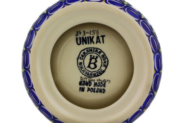 This Polish Pottery Ashtray is handmade and handpainted by the Ceramika Bona factory in Boleslawiec, Poland. Manufacturer item number H9551I. It is 1½" high and measures 4½" by 4½". The capacity of this Ashtray is 1.62 oz (brimful) and it weighs 0.5 lbs. It is part of the Ring Of Flowers Collection.