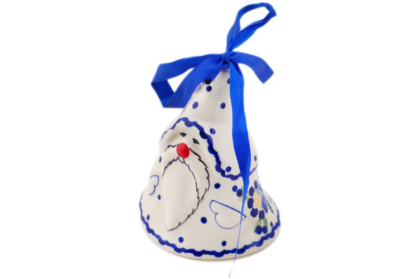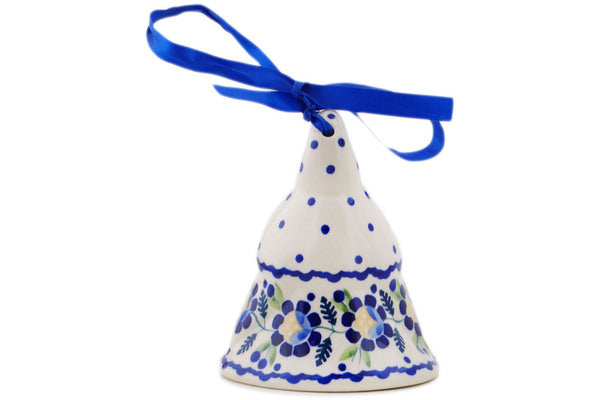 This Polish Pottery Bell Ornament is handmade and handpainted by the Manufaktura factory in Boleslawiec, Poland. Manufacturer item number H1249O. It is 4¼" high and measures 3½" by 3¼". The weight of this Bell Ornament is 0.5 lbs. It is part of the Orange And Blue Flower Collection.
