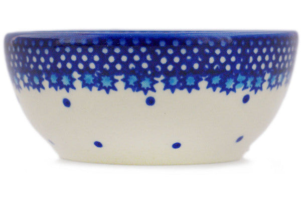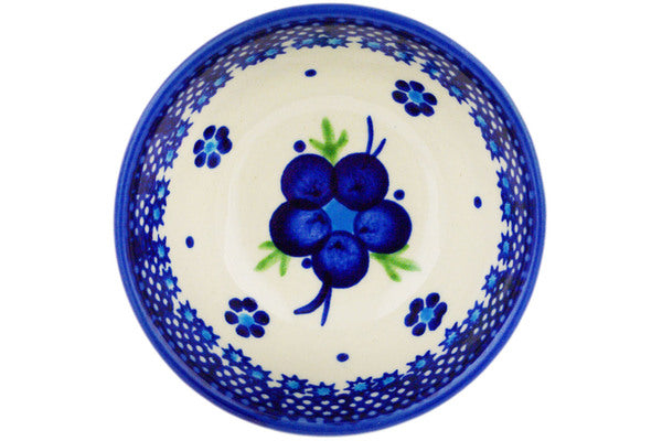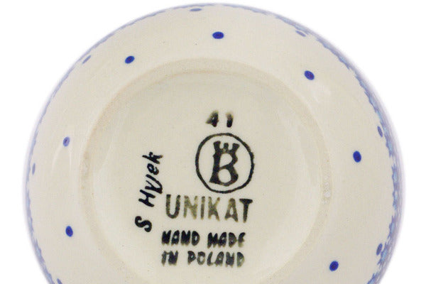 This Polish Pottery Bowl is handmade and handpainted by the Ceramika Bona factory in Boleslawiec, Poland. Manufacturer item number H7007E. It is 1¾" high and measures 4" by 4". The capacity of this Bowl is 4.94 oz (brimful) and it weighs 0.6 lbs. It is part of the Bleu-Belle Fleur Collection.