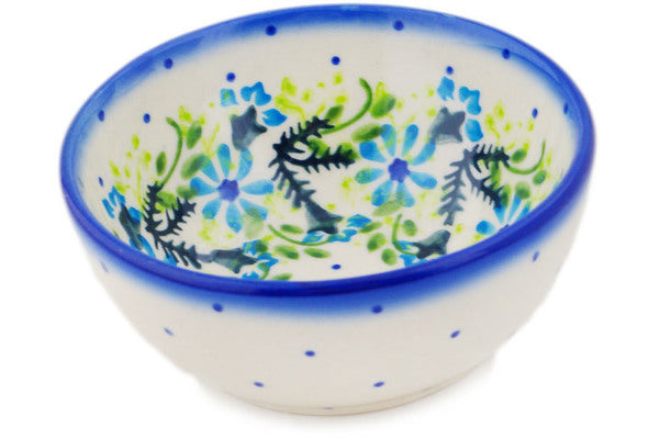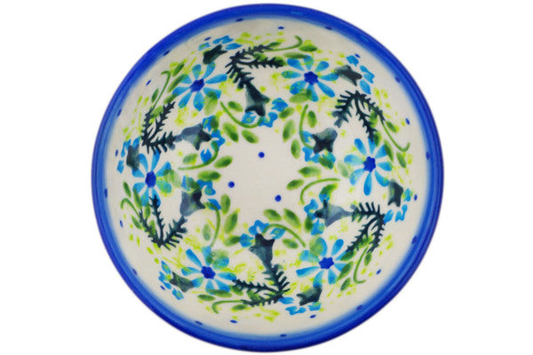 This Polish Pottery Bowl is handmade and handpainted by the Ceramika Bona factory in Boleslawiec, Poland. Manufacturer item number H4613Q. It is 1¾" high and measures 4" by 4". The capacity of this Bowl is 4.94 oz (brimful) and it weighs 0.6 lbs. It is part of the Blue Wreath Collection.