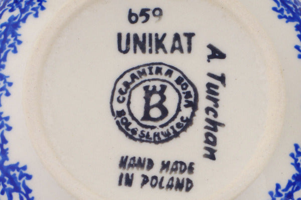 This is a Polish pottery Unikat (Signature) Bowl, which means that it has been hand painted with both sponges and brushes and it is signed by the artist who painted it. Unikat pieces are the most intricate works of art. Larger Unikat items take hours of very careful work to finish.
