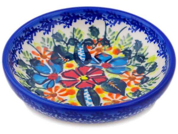 This Polish Pottery Bowl is handmade and handpainted by the Ceramika Bona factory in Boleslawiec, Poland. Manufacturer item number H3095Q. It is 1" high and measures 4½" by 4½". The capacity of this Bowl is 3.11 oz (brimful) and it weighs 0.4 lbs. It is part of the Bold Poppies Collection.