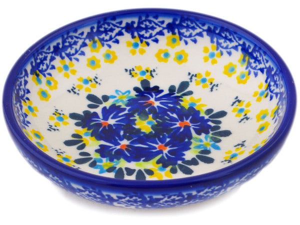 This Polish Pottery Bowl is handmade and handpainted by the Ceramika Bona factory in Boleslawiec, Poland. Manufacturer item number H8757Q. It is 1" high and measures 4½" by 4½". The capacity of this Bowl is 3.11 oz (brimful) and it weighs 0.4 lbs. It is part of the Cornflower Meadow Collection.