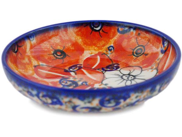 This Polish Pottery Bowl is handmade and handpainted by the Ceramika Bona factory in Boleslawiec, Poland. Manufacturer item number H5866R. It is 1" high and measures 4½" by 4½". The capacity of this Bowl is 3.11 oz (brimful) and it weighs 0.4 lbs. It is part of the Poppy Passion Collection.