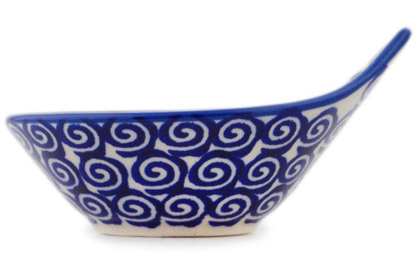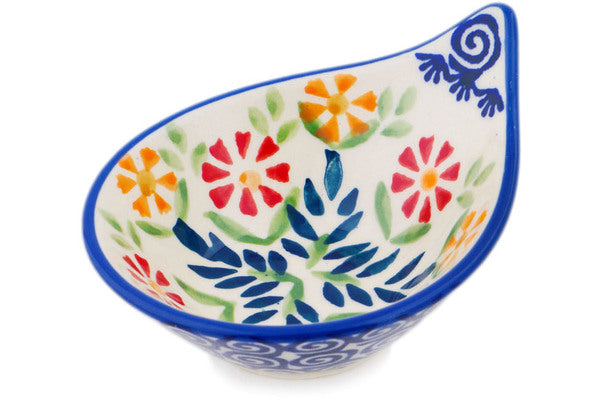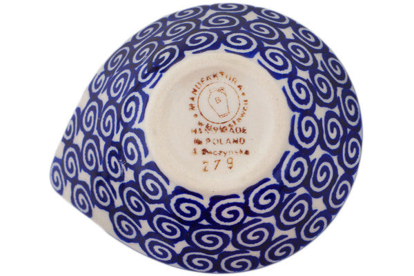 This Polish Pottery Bowl is handmade and handpainted by the Manufaktura factory in Boleslawiec, Poland. Manufacturer item number H8349P. It is 2¼" high and measures 4" by 3¼". The capacity of this Bowl is 2.10 oz (brimful) and it weighs 0.2 lbs. It is part of the Wave Of Flowers Collection.
