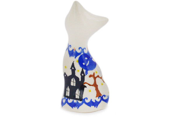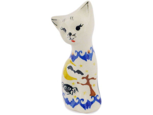This Polish Pottery Cat Figurine is handmade and handpainted by the Ceramika Bona factory in Boleslawiec, Poland. Manufacturer item number H5867R. It is 4" high and measures 1¾" by 1¼". The weight of this Cat Figurine is 0.2 lbs. It is part of the Halloween Spooky Vibe Collection.