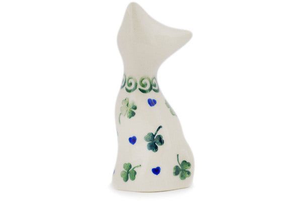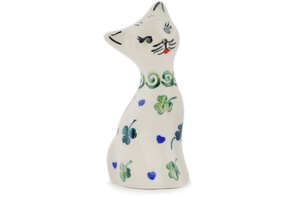 This Polish Pottery Cat Figurine is handmade and handpainted by the Ceramika Bona factory in Boleslawiec, Poland. Manufacturer item number H5011R. It is 4" high and measures 1¾" by 1¼". The weight of this Cat Figurine is 0.2 lbs. It is part of the Lucky Clovers Collection.