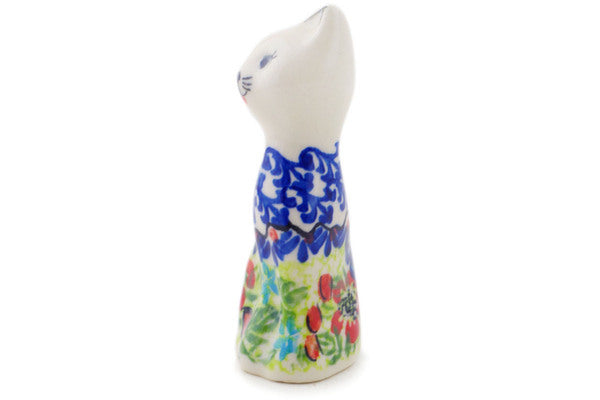 This Polish Pottery Cat Figurine is handmade and handpainted by the Ceramika Bona factory in Boleslawiec, Poland. Manufacturer item number H8755Q. It is 4" high and measures 1¾" by 1¼". The weight of this Cat Figurine is 0.2 lbs. It is part of the Metamorphosis Collection.