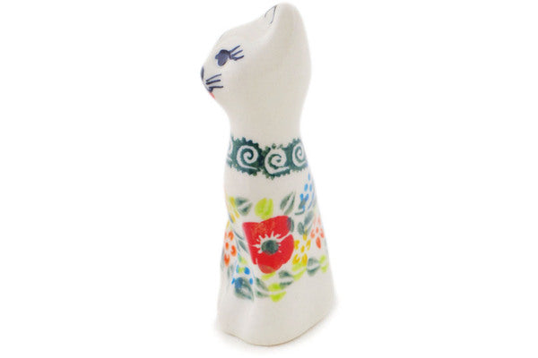 This Polish Pottery Cat Figurine is handmade and handpainted by the Ceramika Bona factory in Boleslawiec, Poland. Manufacturer item number H0223Q. It is 4" high and measures 1¾" by 1¼". The weight of this Cat Figurine is 0.2 lbs. It is part of the Ring Of Meadow Flowers Collection.