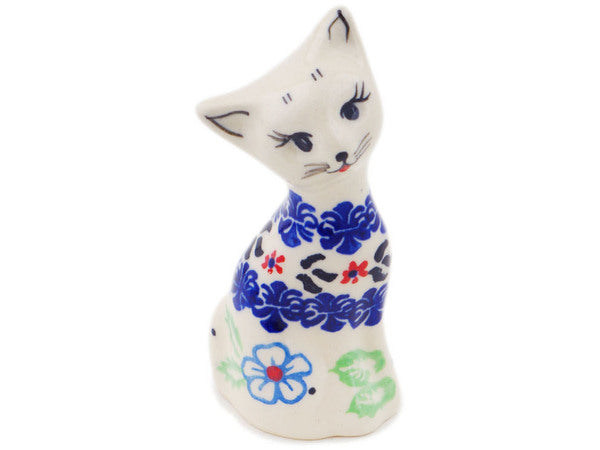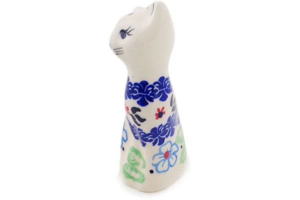 This Polish Pottery Cat Figurine is handmade and handpainted by the Ceramika Bona factory in Boleslawiec, Poland. Manufacturer item number H2022R. It is 4" high and measures 1¾" by 1¼". The weight of this Cat Figurine is 0.2 lbs. It is part of the Sweet Day Collection.