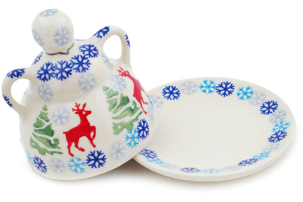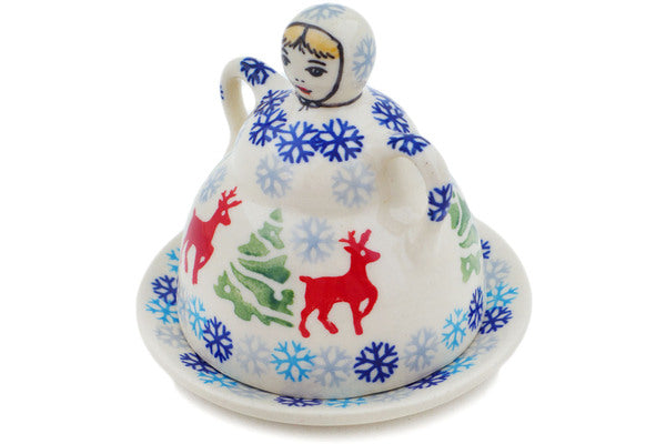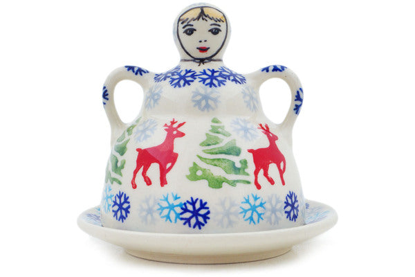 This Polish Pottery Cheese Lady is handmade and handpainted by the Manufaktura factory in Boleslawiec, Poland. Manufacturer item number H1085O. It is 3¼" high and measures 3¾" by 3¾". The weight of this Cheese Lady is 0.4 lbs. It is part of the Ring Around The Reindeer Collection.
