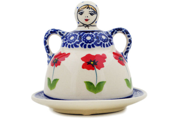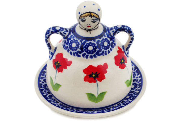This Polish Pottery Cheese Lady is handmade and handpainted by the Manufaktura factory in Boleslawiec, Poland. Manufacturer item number H6518O. It is 3¼" high and measures 3¾" by 3¾". The weight of this Cheese Lady is 0.4 lbs. It is part of the Wind-Blown Poppies Collection.