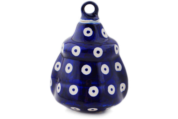 This Polish Pottery Christmas Ball Ornament is handmade and handpainted by the Manufaktura factory in Boleslawiec, Poland. Manufacturer item number H8520Q. It is 3½" high and measures 2½" by 2½". The weight of this Christmas Ball Ornament is 0.2 lbs. It is part of the Peacock Eyes Collection.