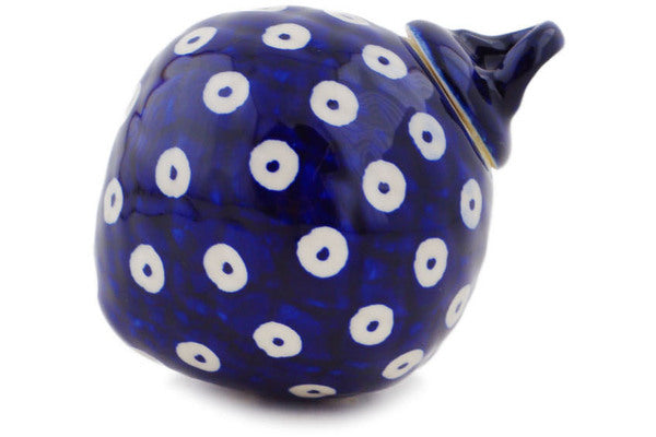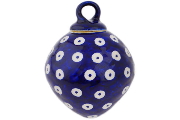 This Polish Pottery Christmas Ball Ornament is handmade and handpainted by the Manufaktura factory in Boleslawiec, Poland. Manufacturer item number H8501Q. It is 3¾" high and measures 3" by 3". The weight of this Christmas Ball Ornament is 0.3 lbs. It is part of the Peacock Eyes Collection.
