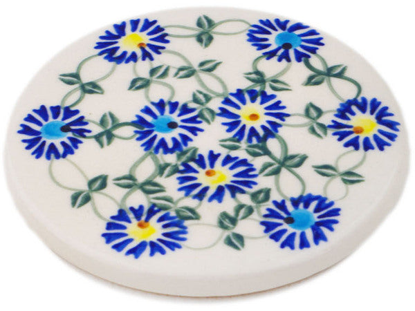 This Polish Pottery Coaster is handmade and handpainted by the Ceramika Bona factory in Boleslawiec, Poland. Manufacturer item number H2233R. It is ¼" high and measures 4½" by 4½". The weight of this Coaster is 0.4 lbs. It is part of the Blue Thistle Beauty Collection.