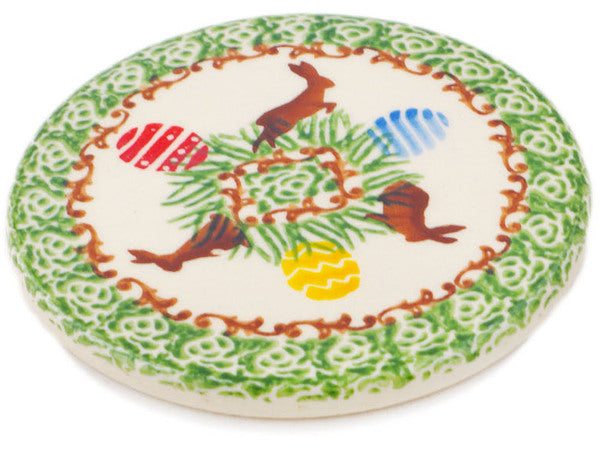 This Polish Pottery Coaster is handmade and handpainted by the Ceramika Bona factory in Boleslawiec, Poland. Manufacturer item number H3566P. It is ¼" high and measures 4½" by 4½". The weight of this Coaster is 0.4 lbs. It is part of the Chocolate Bunny Collection.