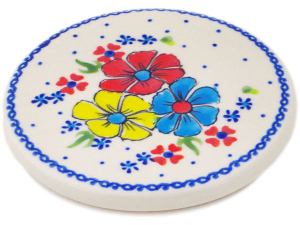 This Polish Pottery Coaster is handmade and handpainted by the Ceramika Bona factory in Boleslawiec, Poland. Manufacturer item number H2153R. It is ¼" high and measures 4½" by 4½". The weight of this Coaster is 0.4 lbs. It is part of the Country Three Collection.