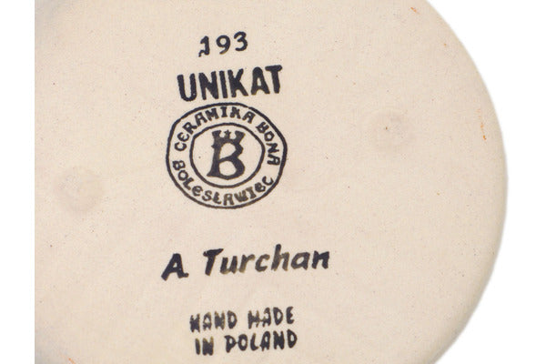 This is a Polish pottery Unikat (Signature) Coaster, which means that it has been hand painted with both sponges and brushes and it is signed by the artist who painted it. Unikat pieces are the most intricate works of art. Larger Unikat items take hours of very careful work to finish.