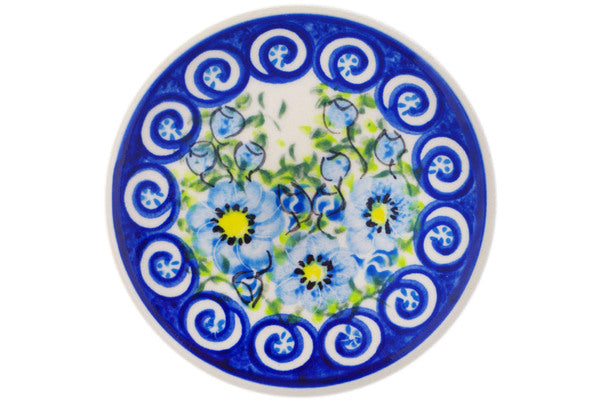 This is a Polish pottery Unikat (Signature) Coaster, which means that it has been hand painted with both sponges and brushes and it is signed by the artist who painted it. Unikat pieces are the most intricate works of art. Larger Unikat items take hours of very careful work to finish.